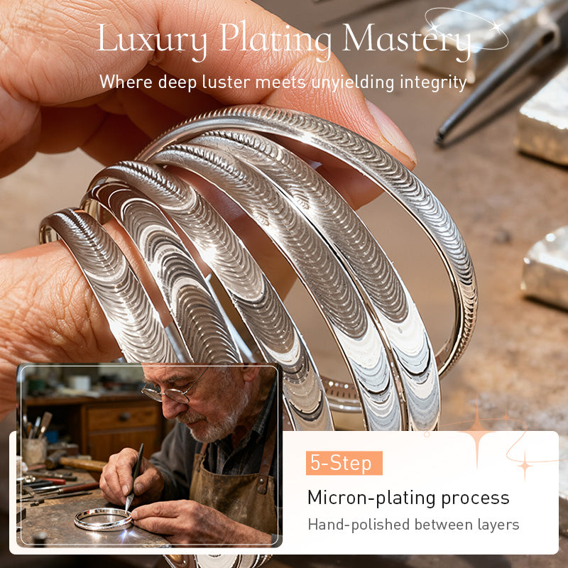 The entire bracelet has been highly polished , creating a mirror-like shine that catches light—and attention—from afar.