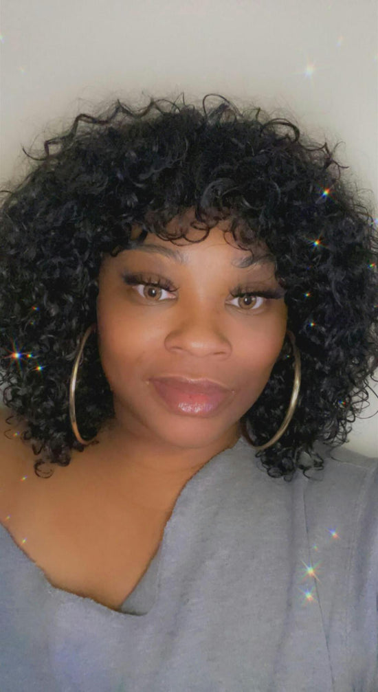 🔥Beginner Friendly Water Wave Minimalist Lace Glueless Short Curly Wig with Bangs