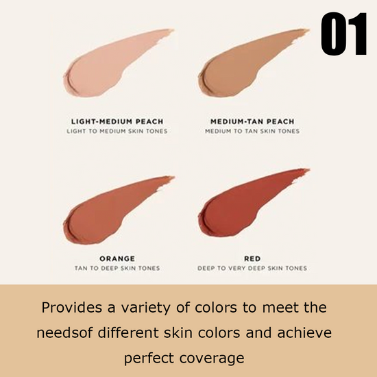 Red: Designed for the deepest skin tones, strongly neutralizes brown/blue under-eye shadows.